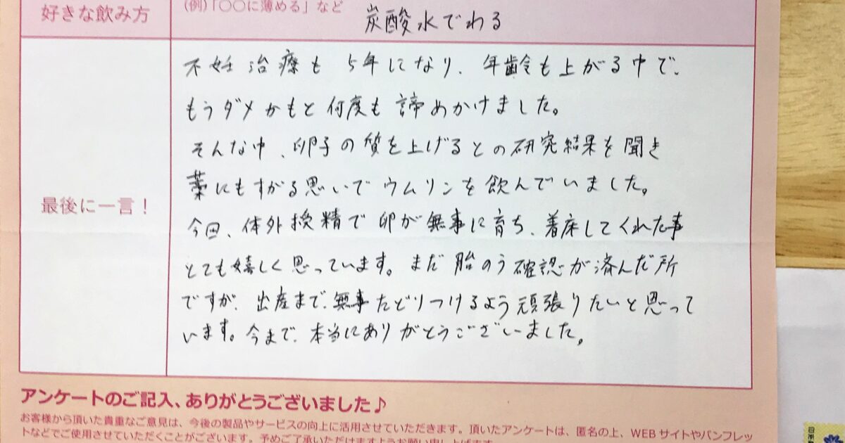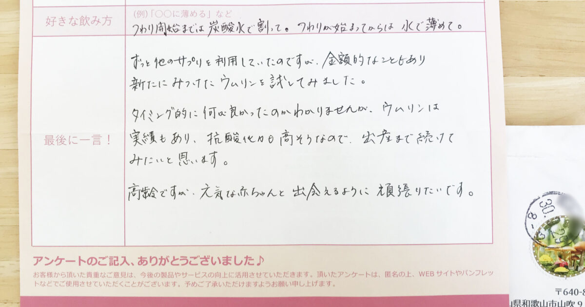 喜び速報 飲みはじめて 2019.01.24 by umulinlab 0 いろいろな理由は、あると思いますが、ありがとうございます。何もない時は、とてものいやすかったのですが妊娠したら味が少し苦手になってしまい(^^;)飲みずらくなってしまったので、やめますが、これから考えている人にはオススメ […]