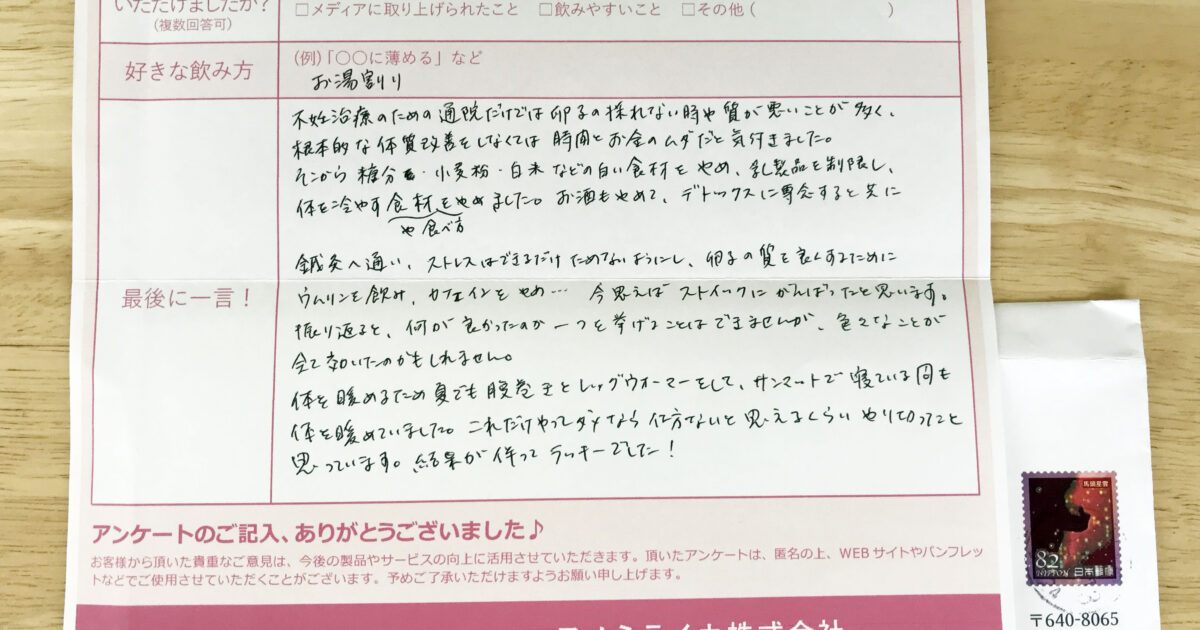 喜び速報 グレードが良く 2018.05.29 by umulinlab 0 とても飲みやすく、暑い時期には、炭酸水に入れて、口あたりをよくして飲んでいました。また、安心して飲み続けられたのも良かったと思います。ありがとうございました!!