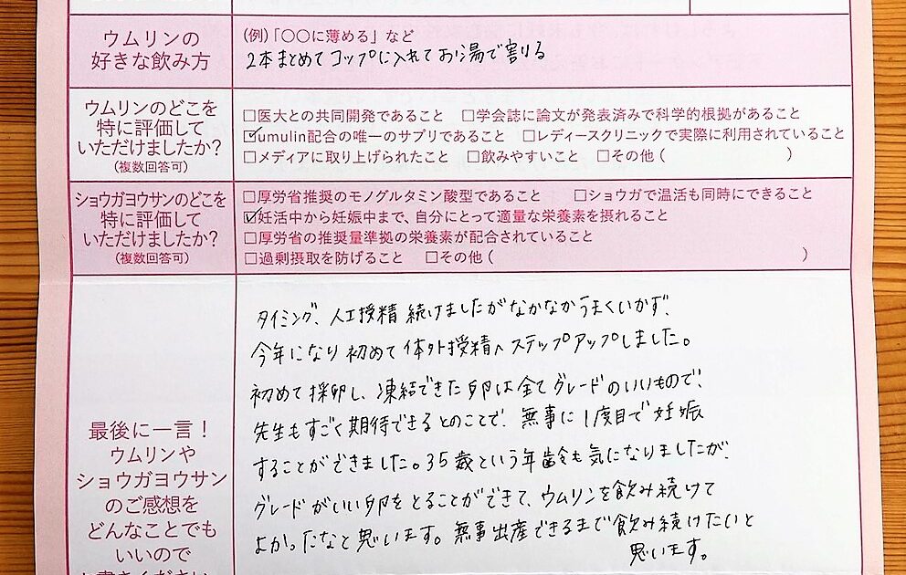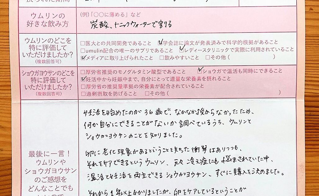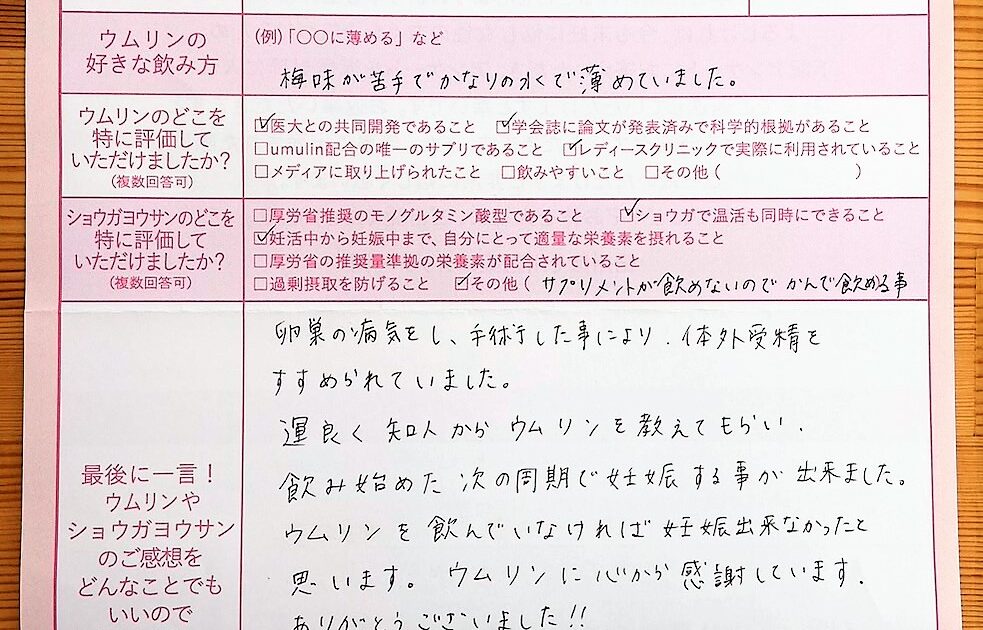 ”何か取り組んでいる”という安心感がありました。他にもあまりお金をかけず取り組んだこと(ゆるくですが)もありましたが、ウムリンを飲んでいるから、きっと良いタイミングでやってくる!と思えたことが大きかったと思います。ウムリ […]