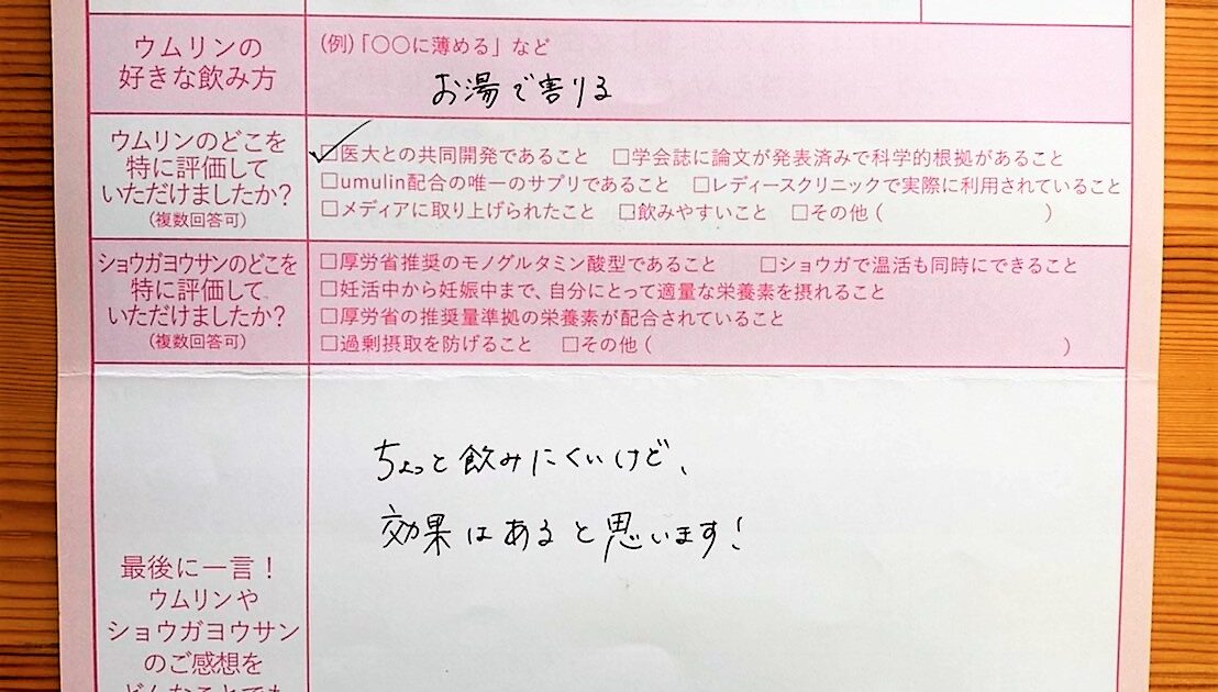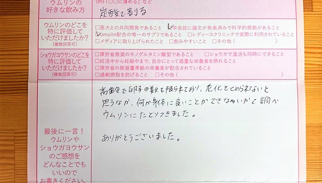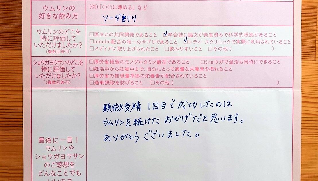 ウムリンを続けたおかげだと思います。ありがとうございました。