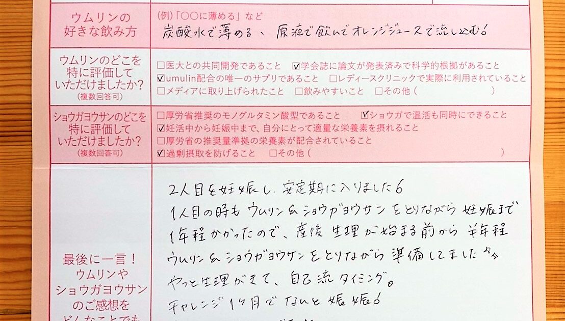 ウムリンに出会うことが出来て、本当に良かったです。個人的に飲みやすかったので、ストレスをためることなく飲み続けることが出来ました。ありがとうございました。