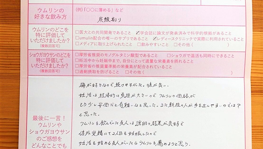 梅が好きなので続けやすかった。味が良い。ウムリンの価格がもう少し安価だと有難いなと思った。また新規の人が手を出しやすいのでは?と思った。私もまたお世話になろうと思っている。