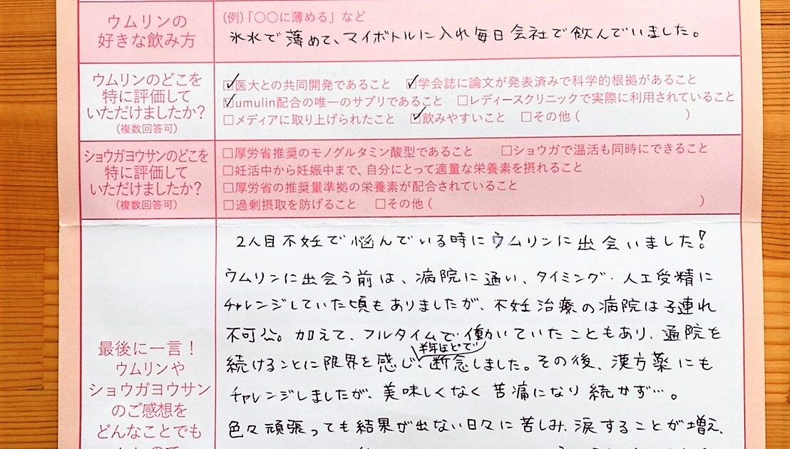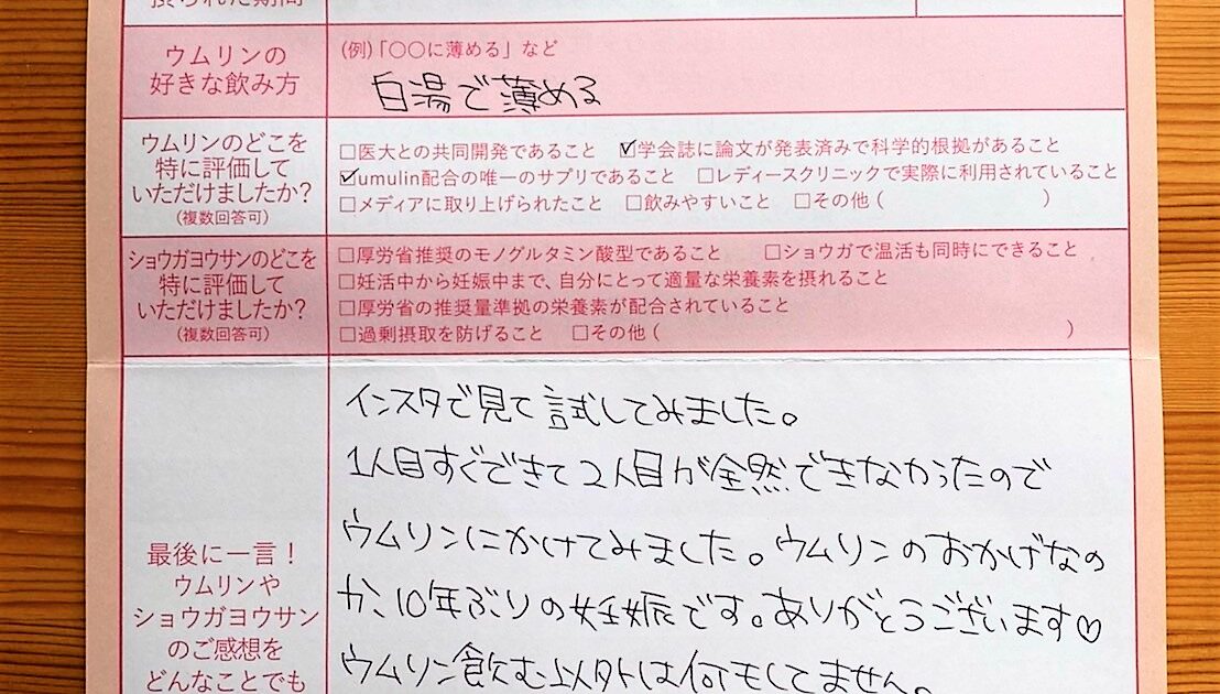 偶然ネットでウムリンのことを知り、気安め程度にとこっそりとウムリンを飲む生活を初め、続けていました(味も好きで、苦なく続けられたことが何より大きかったです)。それ以外は特に何もしていませんでした。7歳差の兄弟の誕生を楽し […]