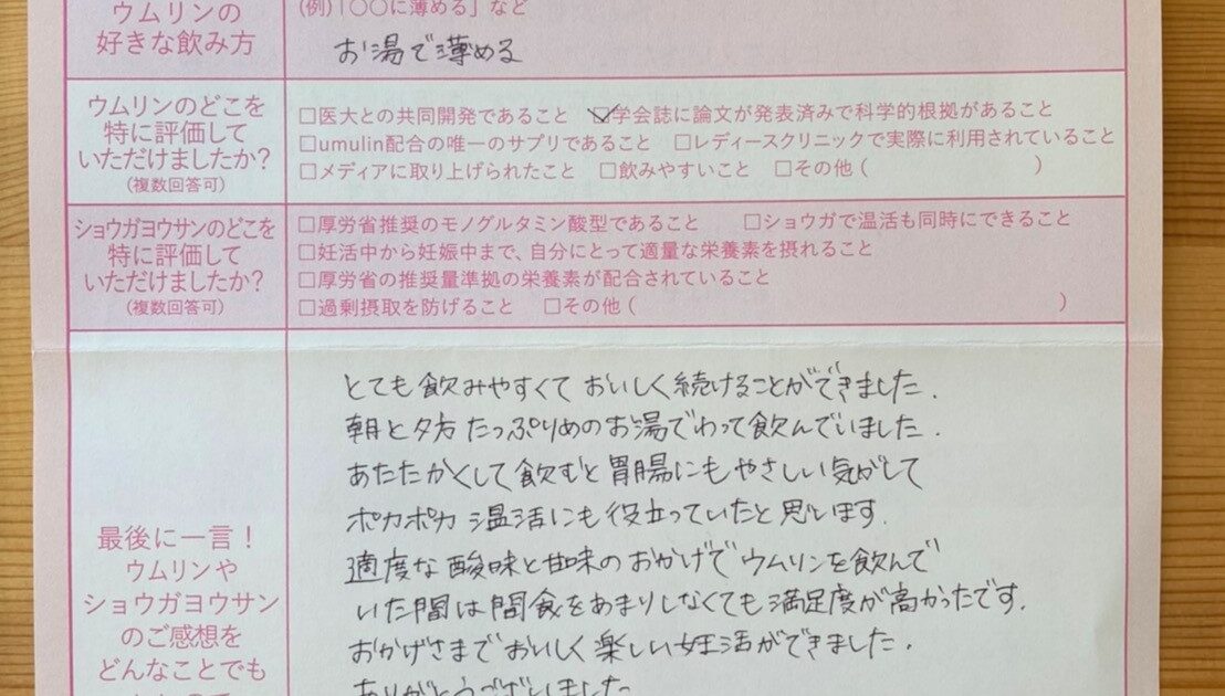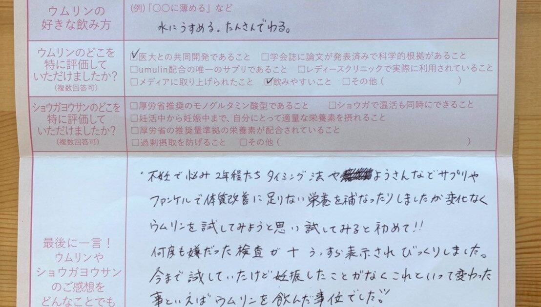 私は元々医療を職業にしているため、きちんとしたエビデンスが出ているということが信頼でき、ウムリンを始める大きなきっかけになりました。 ウムリンの力が大きいと思っています。長くなりましたが、悩んでいる人たちに伝わって欲しい […]