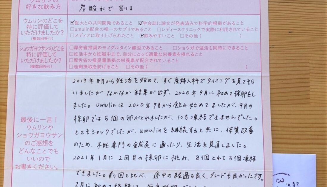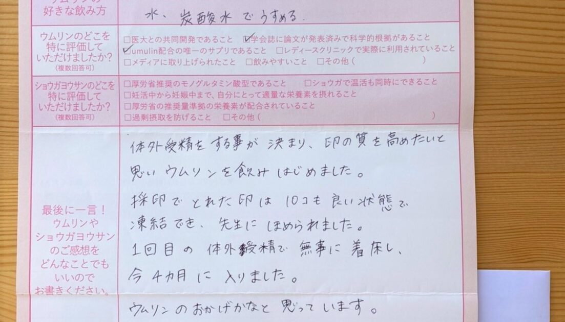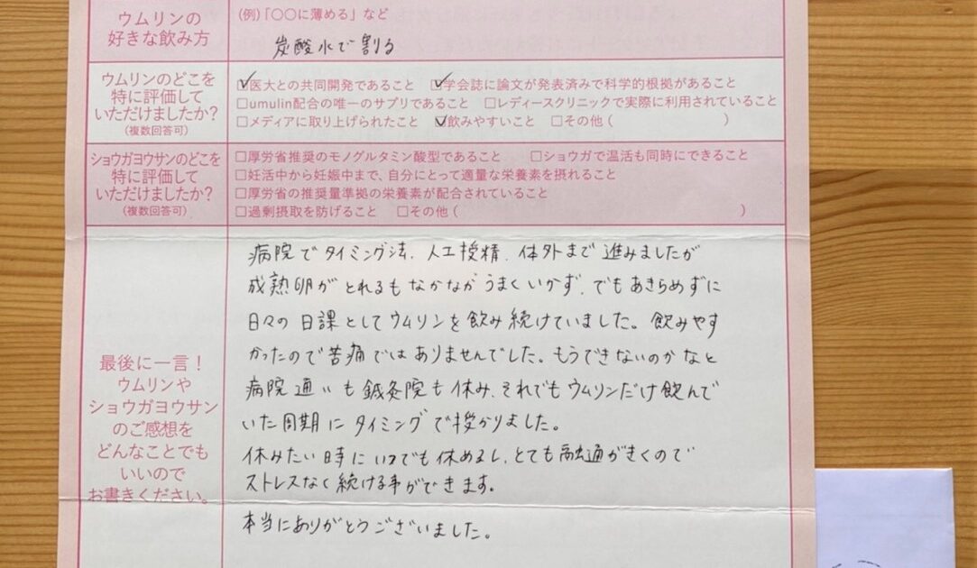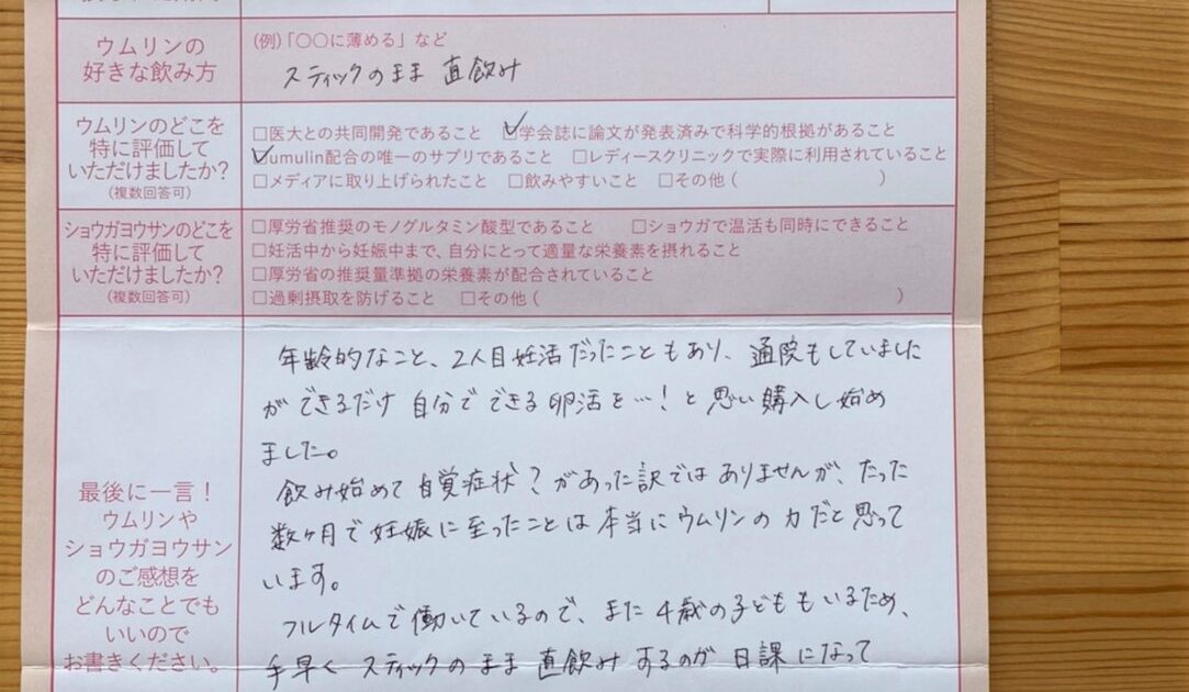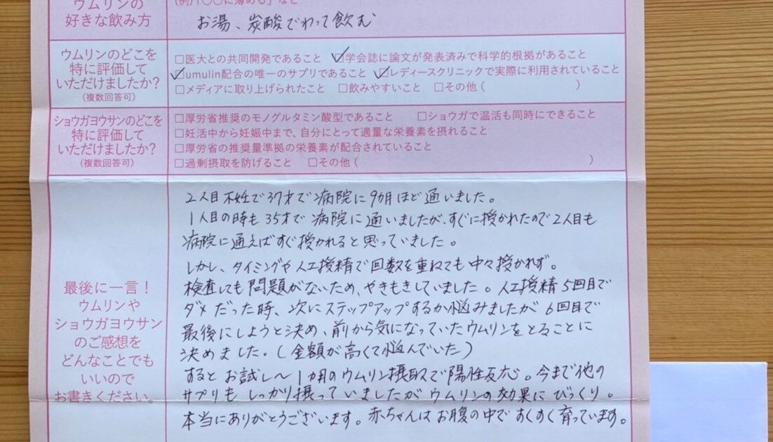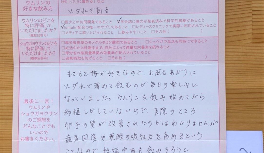 梅は元々大好きだったので、味はとてもおいしかったです。なので続けてこれたと思います。つわりでなかなか飲めていませんが、つわりがおちついたら、残っているウムリンもおいしく飲もうと思っています。 ウムリンを飲んでいる人達がい […]
