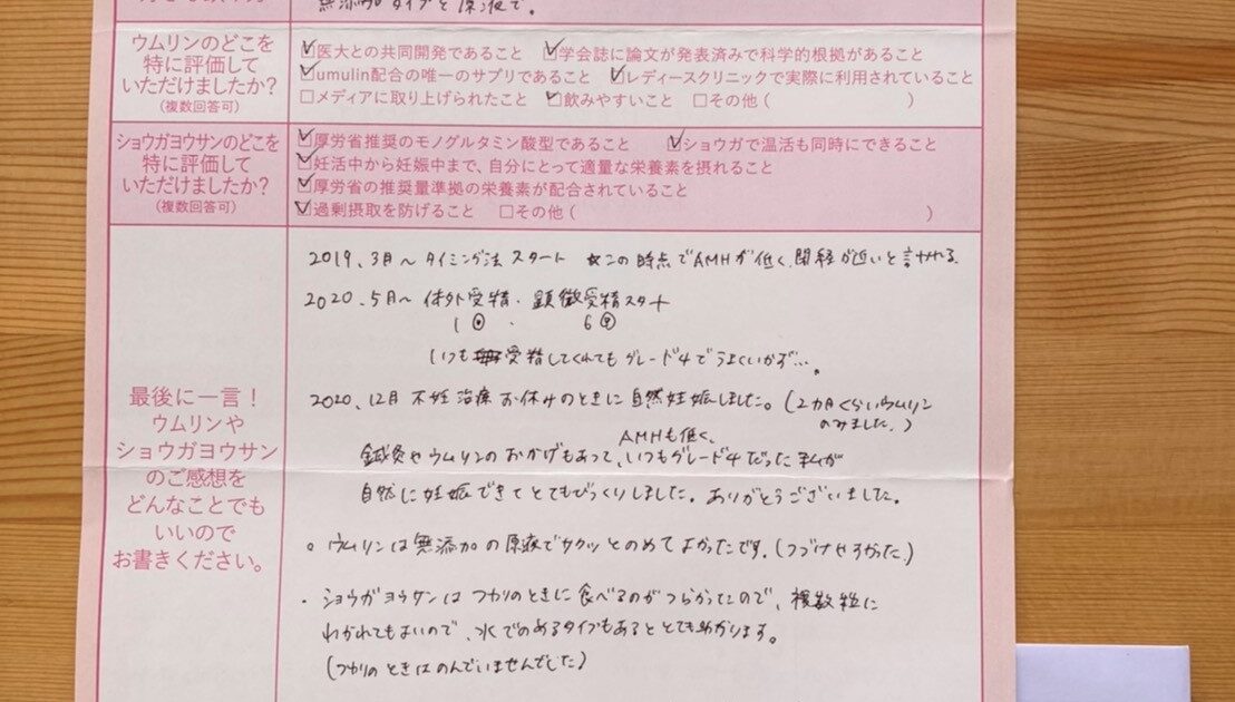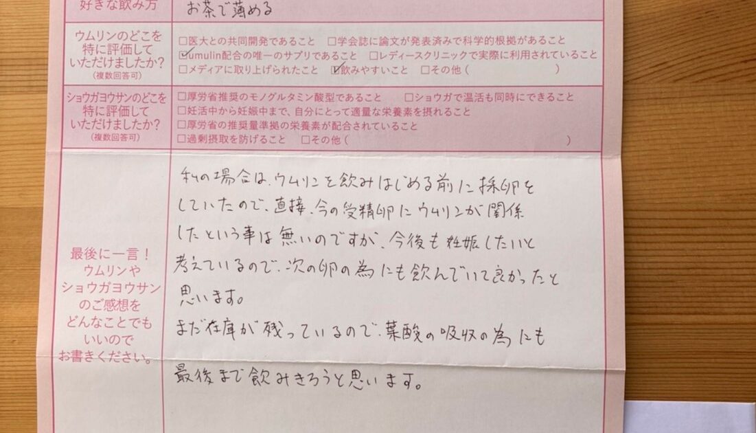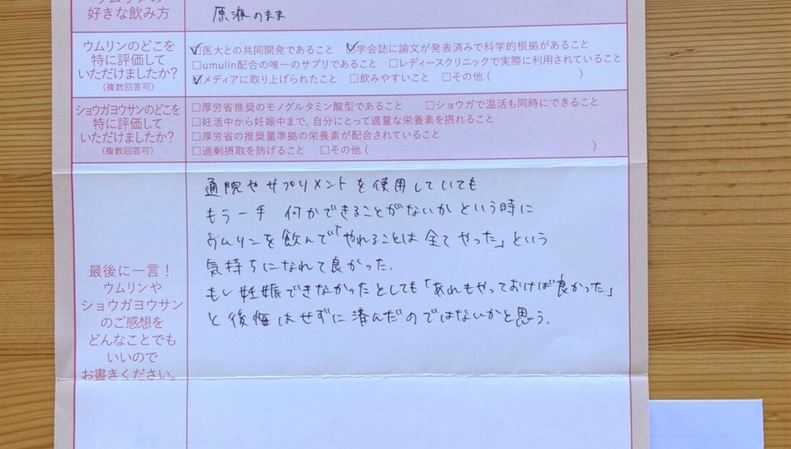 使用していてももう一手何かできることがないかという時に ウムリンを飲んで『やれることはすべてやった』という気持ちになれて良かった。