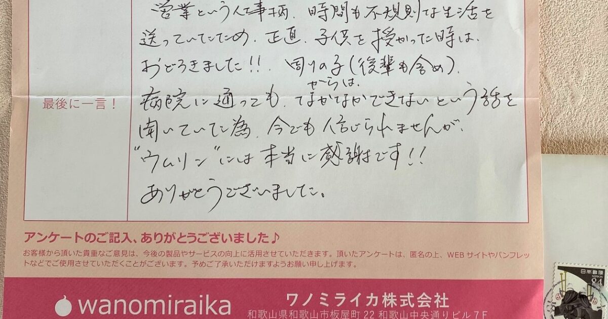 営業という仕事柄、時間も不規則な生活を送っていたため、正直おどろきました!!ありがとうございました。