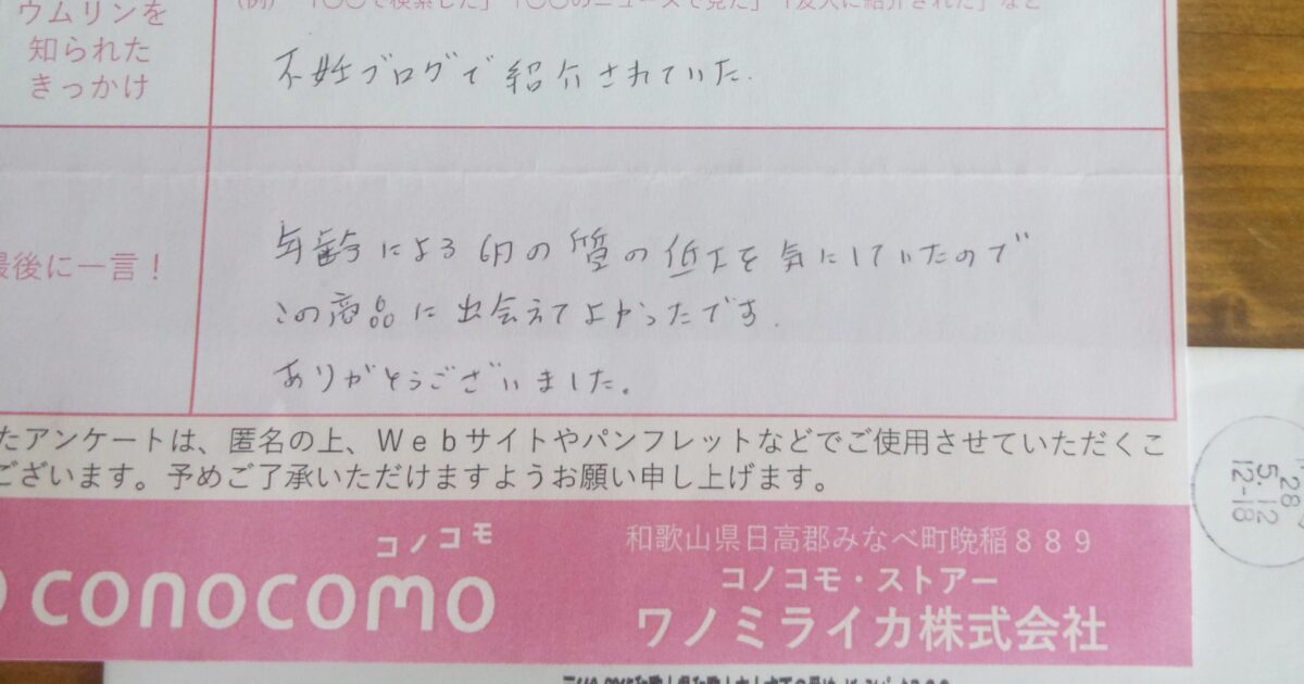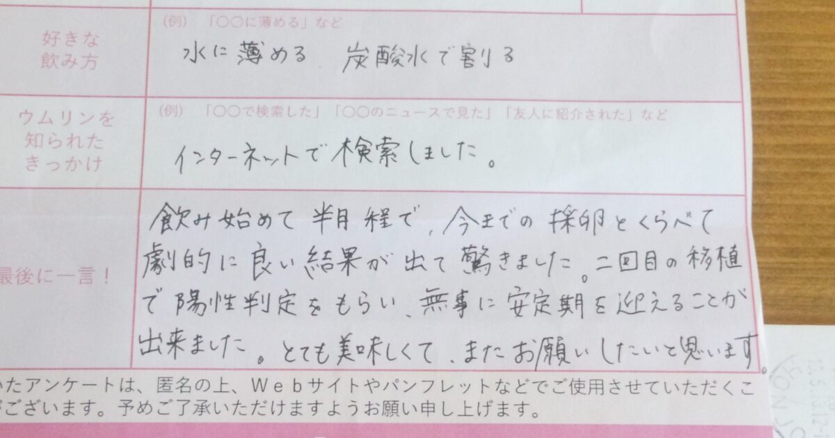 ウムリンのおかげがどうかははっきりしませんが、今後も飲み続けていきたいと思います。