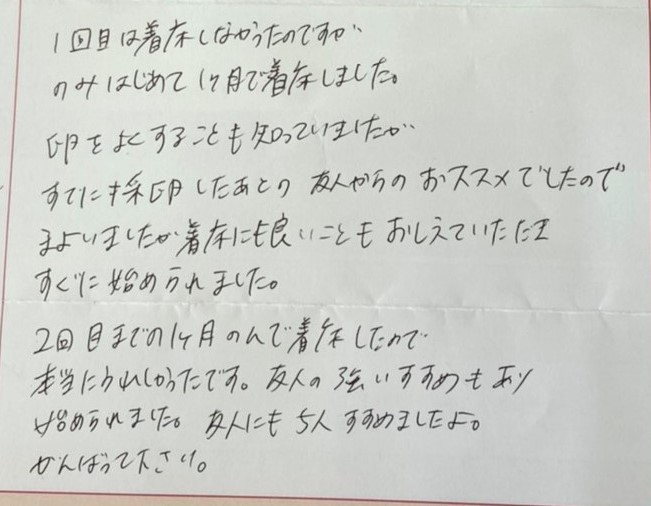 通院する前から飲んだ効果が出たのか、初めての体外、顕微で1番グレードの高い胚盤胞となり妊娠しました。きっとウムリンのおかげだと思います。