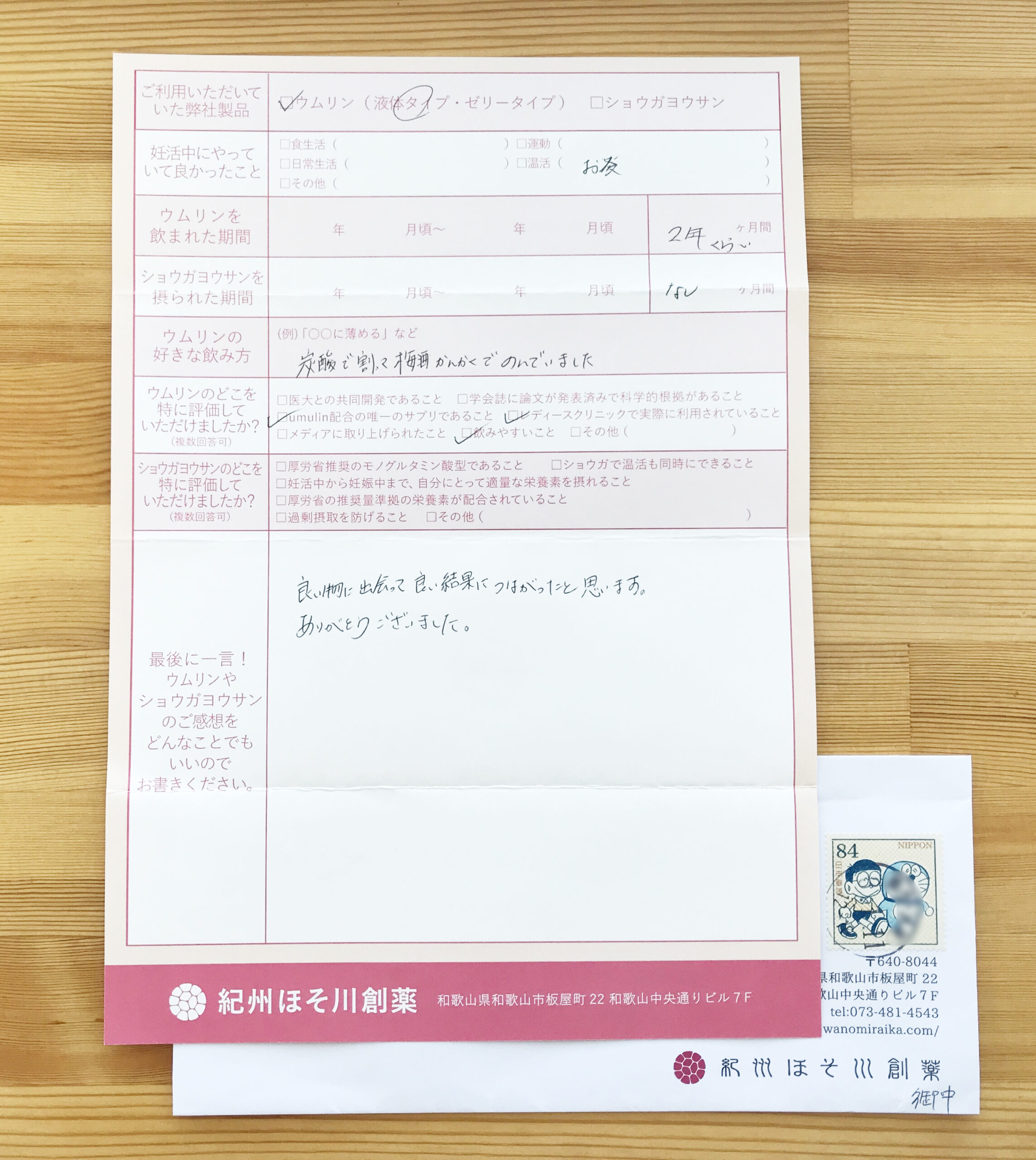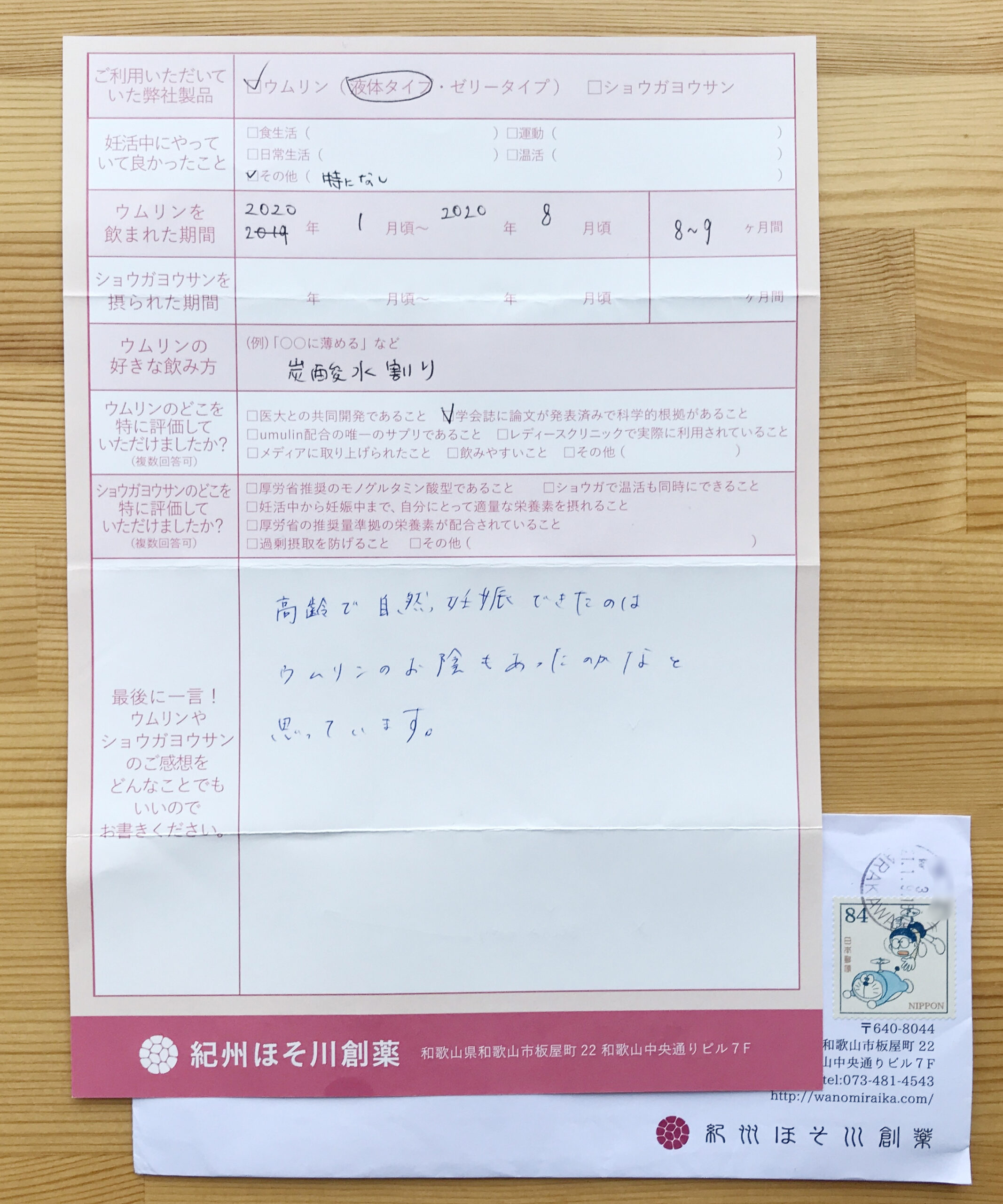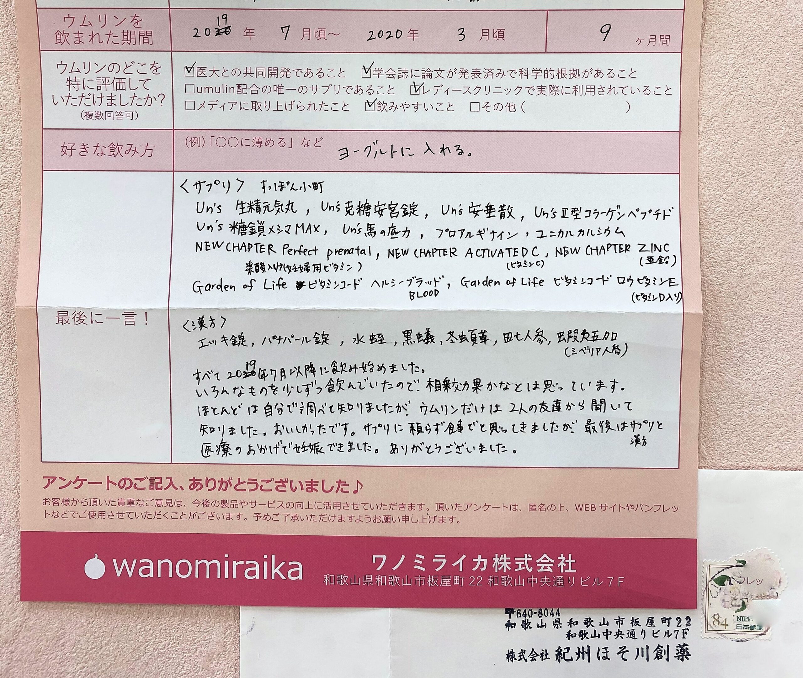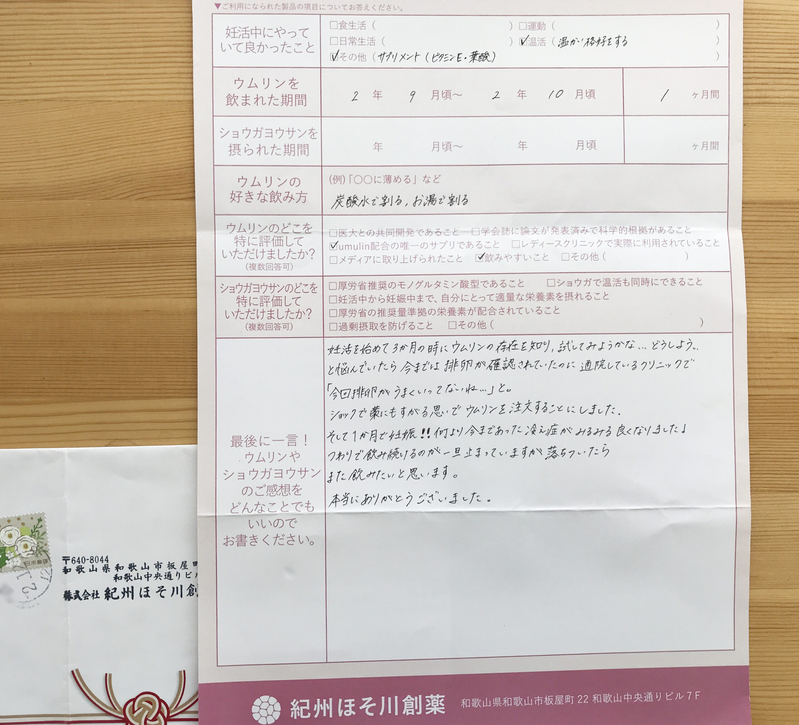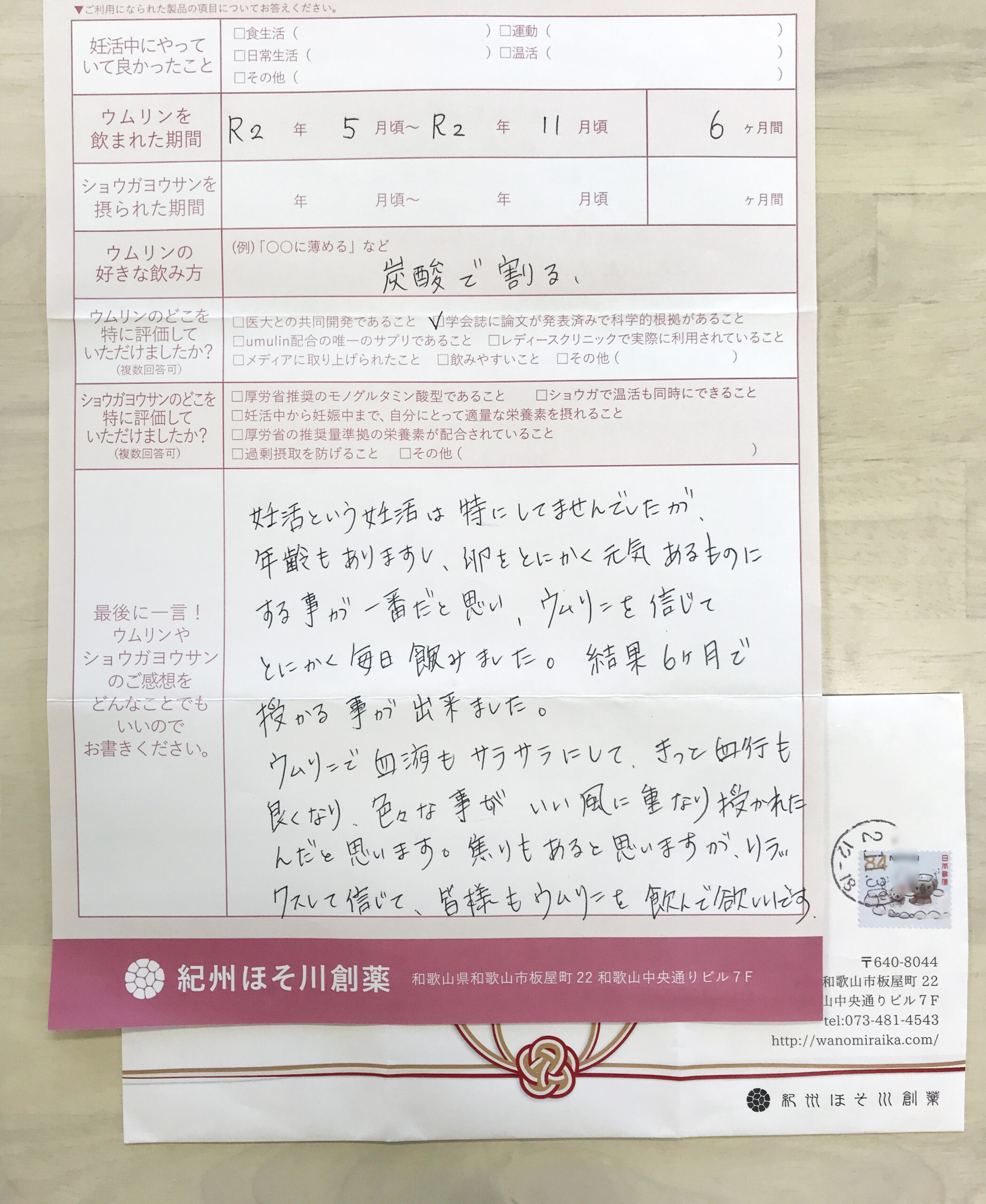 梅有用成分[ウムリン]に届いた飲用結果報告をご紹介します。